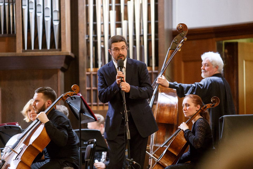 Ведущий концерта. Блестящий пианист, рассказчик и организатор — это все один человек, профессор Московской консерватории Станислав Дяченко. Создавать такие программы и приглашать таких исполнителей под силу не каждому. Но главное, что ему удаётся — заражать и заряжать любовью к музыке всю публику поголовно. Мы, зрители, еще не меломаны, но уже точно не глухи к звукам прекрасной классики!